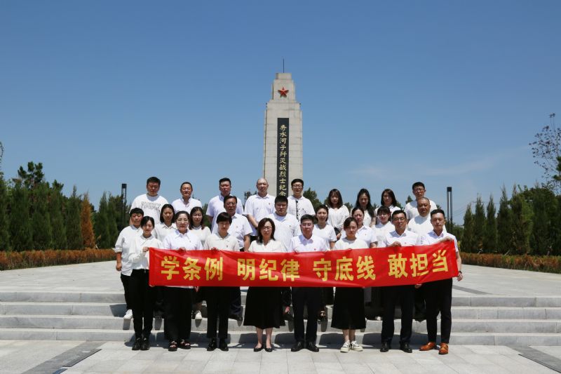 随后,党员们一同来到庄严肃穆的烈士陵园。甬道两侧,青松翠柏,郁郁葱葱。巍峨的烈士纪念碑矗立在广场中央,“秀水河子歼灭战烈士纪念碑”赫然映入眼帘。党员们身着正装,整齐排列,面向烈士纪念碑,齐唱中华人民共和国国歌。