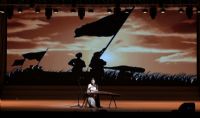 第一篇章:历史不会忘记。民乐合奏《映山红花开红军来》、男声合唱《松花江上》、男声独唱《永志不忘》体现出一种情感的自然流露,一种对红军的热爱,带我们回到那段烽火硝烟的岁月。