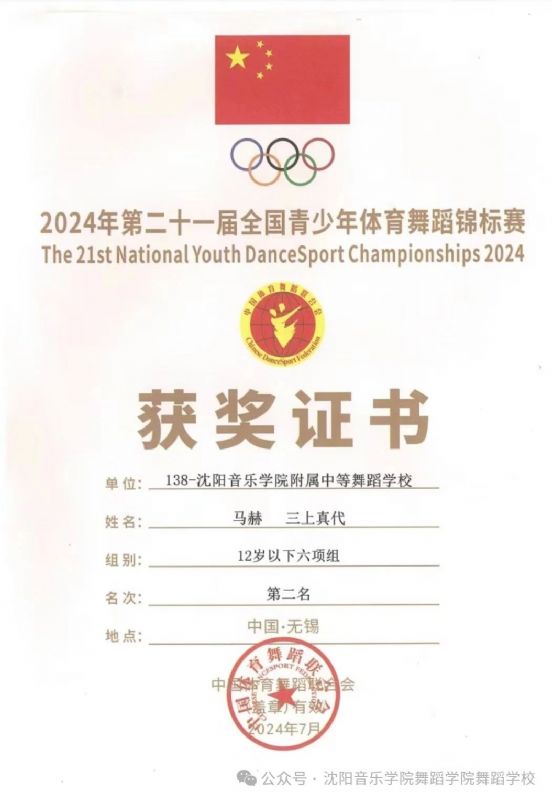 全国青少年体育舞蹈锦标赛作为全国青少年体育舞蹈领域最权威的专业赛事之一,裁判团由世界体育舞蹈联合会选派的40位外籍裁判员组成,保证了比赛的权威性、公正性和专业性。来自北京舞蹈学院附中、上海戏剧学院附属舞蹈学校、南京艺术学院附中等学校的百余名选手参赛,进行了激烈角逐。我校获奖的2022级学生马赫和日本籍留学生三上真代,虽然入学时间较短,双人组合训练仅半年时间,但是他们以敢打敢拼的竞技精神、精湛出色的舞台表现力,在50对参赛选手中脱颖而出,成功入围决赛并取得了优异成绩。