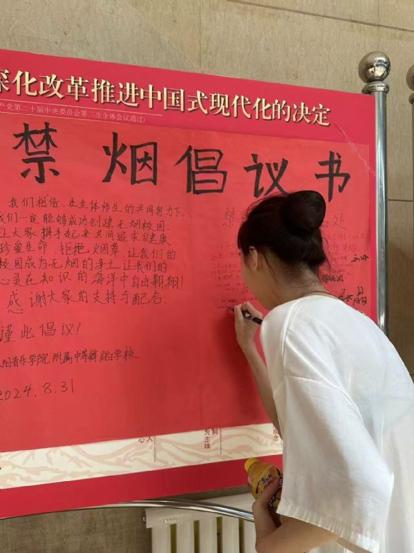 舞蹈学校分团委带领学生会成员精心策划、周密组织,充分利用召开班会、绘制手抄报、知识宣讲等多种形式,进行了吸烟有害健康的宣传教育,提高禁烟意识和能力。本次禁烟宣传主题活动包括师生禁烟倡议签字;在教学楼、寝室楼、食堂等公共区域张贴禁烟宣传海报、自制手抄报;组织学生签署《禁烟承诺书》等,吸引了近800名师生参加。