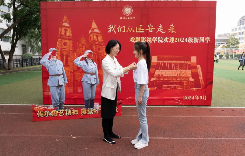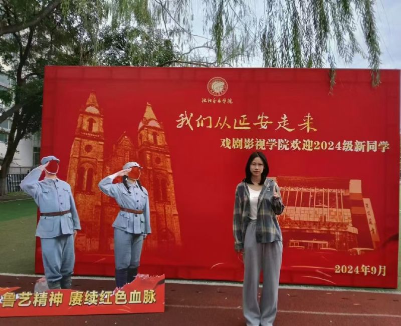 第一教学楼前,书写着“我们从延安走来——戏剧影视学院欢迎2024级新同学”的宣传展板格外醒目,展板上延安鲁艺旧址和长青校区音乐剧场展示了沈音80多年的办学历程,原创剧目《延水谣》剧照人物吸引了一批批2024级新同学驻足留影,留下大学生活的第一张照片。春华秋实,岁物丰成。迈入校门的一刻,同学们便有了新的身份——“沈音学子”和“新时代鲁艺传人”。穿越时空、历久弥新的鲁艺精神,在今天有了新的一批薪火传承人。
