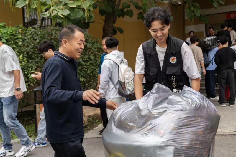 一大早,在旭日的映照下,身穿统一绿色体恤衫和摄影夹克的学生志愿者们便开始在学校正门、报到现场、宿舍楼间不停穿梭,路线指引、信息咨询、行李搬运,随处可见同学们忙碌的身影,挂满汗水的脸庞始终洋溢着阳光与活力,一幕幕温馨感人的迎新画面在校园里真情呈现。