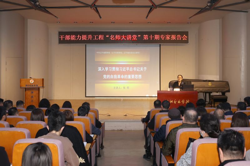 为深入学习贯彻习近平总书记关于党的自我革命的重要思想,贯彻落实党中央和省委关于开展党纪学习教育的部署要求,为开展好学院党纪学习教育蓄能充电、预热升温,引导全体党员干部进一步增强推进自我革命的自觉性和坚定性,把“讲诚信、懂规矩、守纪律”重要要求内化于心、外化于行,始终做到忠诚干净担当,着力营造风清气正的良好政治生态,4月10日下午,学院举办干部能力提升工程“名师大讲堂”第十期专家报告会,特别邀请中共辽宁省委党校(辽宁行政学院、辽宁省社会主义学院)党建教研部副主任张明教授就“深入学习贯彻习近平总书记关于党的自我革命的重要思想”作专题辅导报告。学院领导、处科级领导干部、党支部书记、专职组织员和专职党务工作人员近300人参加报告会。报告会由党委副书记孙旭东主持。