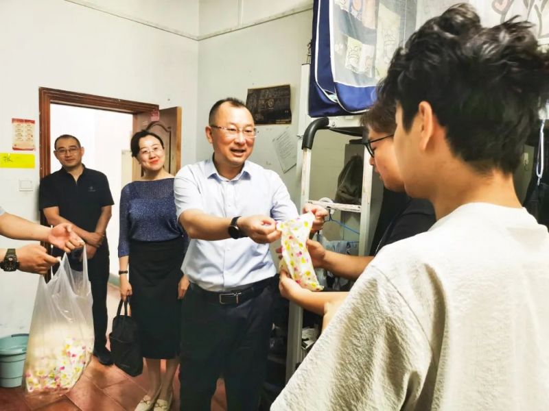 孙旭东一行首先看望了因排演而未能回家过节的学生们,为同学们送上节日问候和祝福,嘱咐大家认真排演,不负“粽”望。随后,他深入各校区学生公寓,为节日留校学生发放了爱心礼包——香甜的粽子、鸡蛋、精美的五彩绳,仔细询问了学生的学习和生活情况,并提醒同学们注意宿舍用电安全、在校期间严格遵守学校的各项规定,合理分配时间,度过一个平安而充实的端午节。