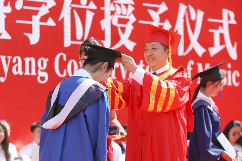 青春启程、奔赴山海。向祖国报到,向人民报到。6月26日,沈阳音乐学院2024届学生毕业典礼暨学位授予仪式在三好校区足球场隆重举行。学院党委书记赵恒心,党委副书记、院长田彦,党委副书记孙旭东,纪委书记、监察专员闫玉娇,副院长庞渤,副院长王硕,相关职能、教辅部门负责人,各二级院(系)领导班子成员,毕业生辅导员,毕业生家长代表及2024届本科生、研究生参加典礼。典礼由孙旭东主持。