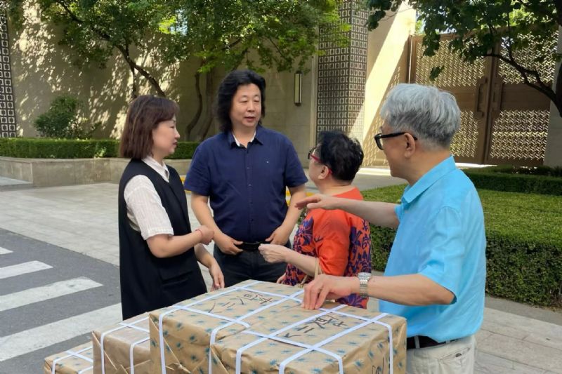 霍立教授在从教几十年中,对中国声乐作品进行精心遴选和编排,对适合声乐演唱教学的作品进行分类整理,认真严格地进行校对排版,形成了堪称声乐“曲库”的这套作品集。该作品1-17集均已出版,已包括了近700首歌曲,为声乐教学工作,学科教材规划和建设等作出了巨大贡献。在捐赠活动中,霍立教授将书籍分册包装,摆放整齐。她向大家详细的介绍了书籍的内容,讲述了编写意义和对声乐教育事业未来的展望,充分体现了一位教育家德艺双馨的典范形象,她虽然已不在一线教学岗位,但仍心系中国声乐教育事业的发展。