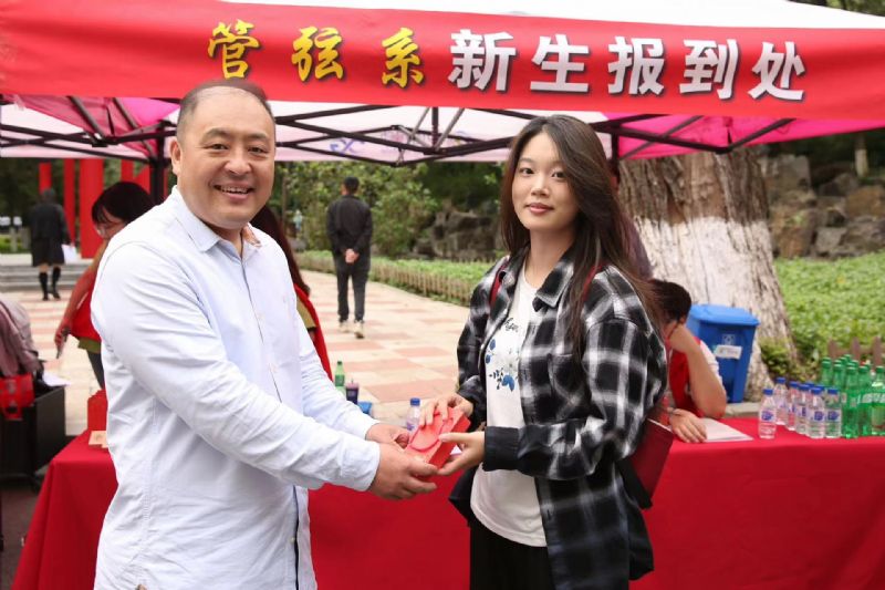 报到当天,管弦系领导班子早早地等候在迎新现场,为新生们精心准备了具有专业特色风格的木质小吉他U盘作为伴手礼,送给每一位报到新生。
