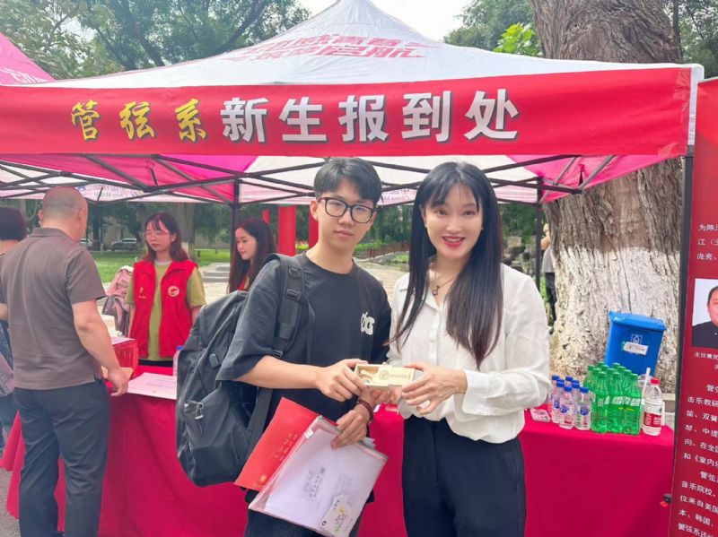 上午9时,学院党委书记赵恒心、党委副书记孙旭东、副院长庞渤、副院长王硕、纪委书记张健一行来到管弦系报到现场走访,亲切慰问了新生代表何羽田,激励他勇敢地面对未来的挑战,并为他送上精心准备的迎新大礼包。