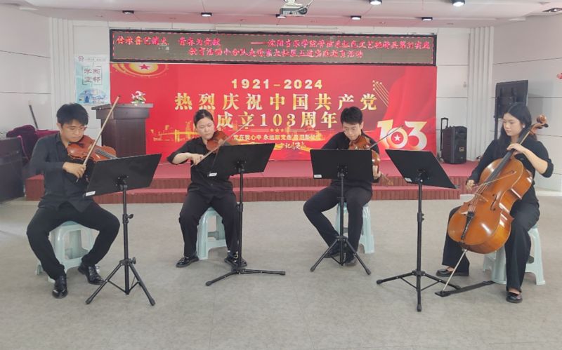 管弦系党总支将继续带领文艺轻骑兵当好文艺排头兵,做好实践者,持续开展常态化文艺演出,以喜闻乐见的表演形式,带给群众更多的文艺作品。让老百姓能够感受到来自中国共产党的温暖,不断种下坚定不移听党话、跟党走的种子。管弦系全体党员将以高度的政治自觉和使命担当,全力服务辽宁振兴发展,传承鲁艺薪火,接续奋进新征程,以实际行动欢庆党的103岁生日,共同奏响新时代高质量发展新篇章。