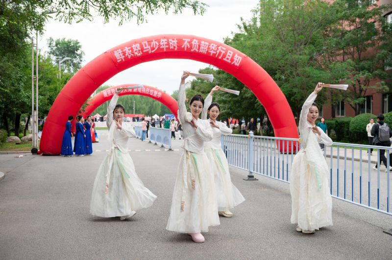 学长学姐们身着体现专业特色和各个民族的演出服载歌载舞,为新生和家长献上精彩的表演,展现了中华民族一家亲,同心共筑中国梦的大美画卷。