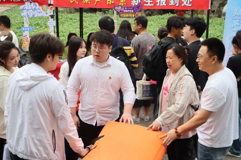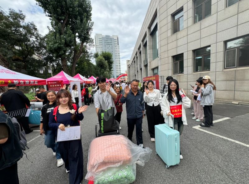 志愿同行。师哥师姐们用小板车一趟趟运送着新生们的行囊,穿梭在校园的林荫路上,从校门到寝室,一路为新生介绍学校的点点滴滴,用热情的服务和耐心地解答,为初来乍到而手足无措的小萌新们指引方向。