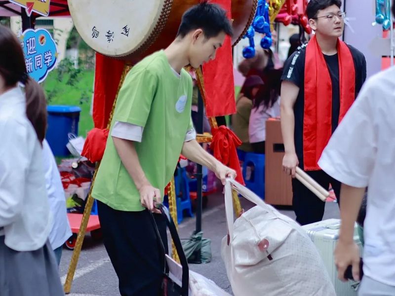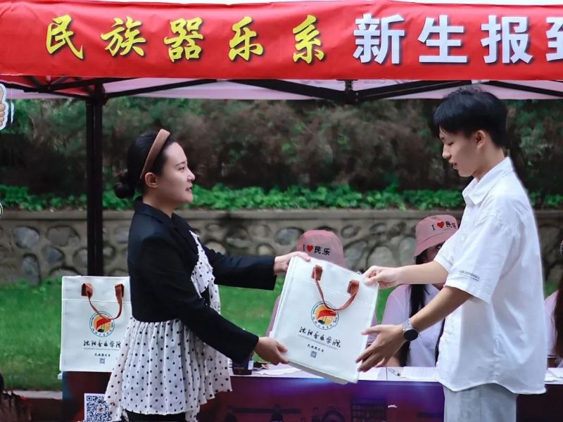 “同学你好,请到这边报到!”2024级新生在志愿者的悉心引导下,迎新工作有序进行,为新生提供“一站式”服务。咚!咚!咚!报到地点以一面别具特色的“建鼓”三曲联奏《鼓威》《鼓诗》《填鼓》尽显国韵风采,铿锵有力的鼓声伴着欢声笑语漫延开来。身着汉服的人形打卡牌吸引萌新们纷纷合照,让国风成为沈音青年的新潮流。系里为新生精心准备了环保帆布袋,袋内装有《沈阳音乐学院大学生手册》、“鲁小艺”生涯教育辅导员工作室制作的新生成长发展记录档案,帮助新生在不断认识自己的过程中完善规划,充分激发潜能、发挥优势、提升个人幸福感,实现自身发展与社会需求的相互匹配。