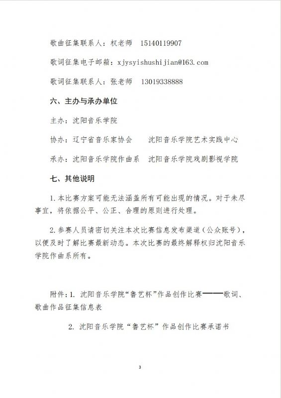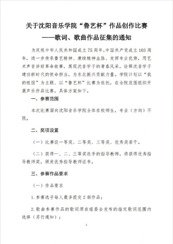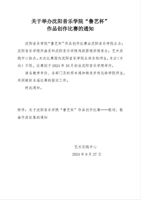 关于举办沈阳音乐学院“鲁艺杯”作品创作比赛的通知