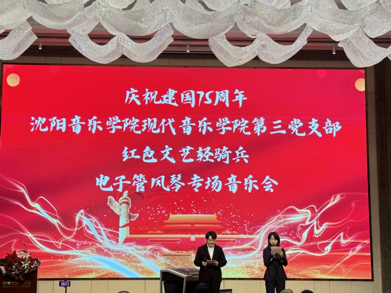 为庆祝中华人民共和国成立75周年,9月27日下午,沈阳音乐学院“红色文艺轻骑兵”第82小分队(现代音乐学院第三党支部)走进浑南区泰康之家·沈园养老服务有限公司,为老人们献上了一场精彩的文艺演出。活动由现代音乐学院副院长、第三党支部书记唐晓博组织带队,第三党支部学生党员、积极分子代表参与演出。