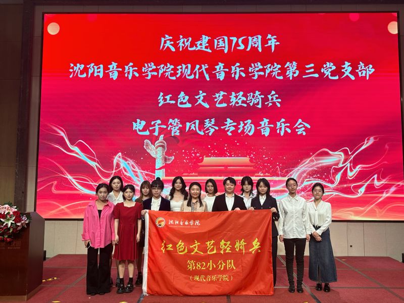 • 为庆祝中华人民共和国成立75周年,9月27日下午,沈阳音乐学院“红色文艺轻骑兵”第82小分队(现代音乐学院第三党支部)走进浑南区泰康之家·沈园养老服务有限公司,为老人们献上了一场精彩的文艺演出。活动由现代音乐学院副院长、第三党支部书记唐晓博组织带队,第三党支部学生党员、积极分子代表参与演出。