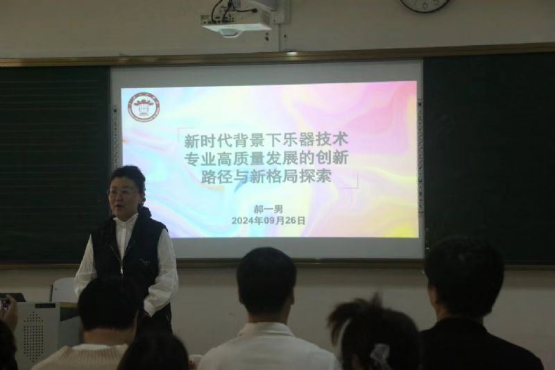 2024 年 9 月 26 日上午,音乐科技系邀请星海音乐学院乐器工程系副主任郝一男副教授为全系师生带来了一场主题为《新时代背景下乐器技术专业高质量发展的创新路径与新格局探索》的精彩学术报告。音乐科技系党总支书记姚艳秋主持报告会。