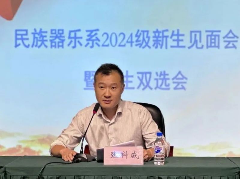 张科威主任首先代表民族器乐系对2024级新生的到来表示热烈欢迎。他介绍了我系历史、专业发展、人才培养、师资队伍及获奖情况等,并提出了三点希望:一是要坚守理想,秉持初心,做矢志不渝的鲁艺传人。二是要刻苦学习、敢于创新,做本领过硬的鲁艺传人。三是要脚踏实地、勇于实践,做明德成才的鲁艺传人。