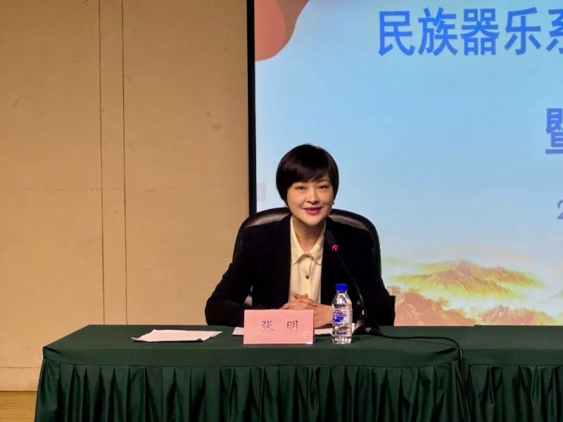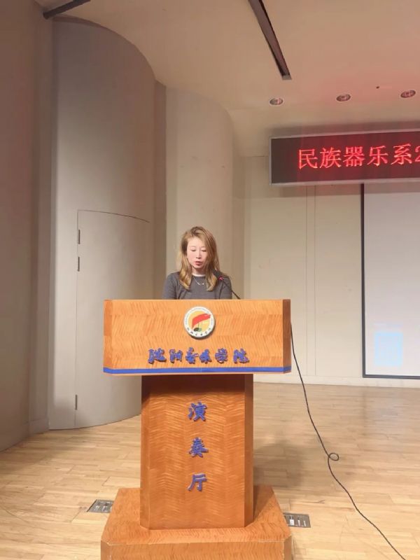 副主任张明介绍各教研室专任教师和沈音•北方民族乐团的情况。她讲到,我系师资队伍学缘结构合理、教学经验丰富,高级职称教师占60%以上;北方民族乐团成立20多年的时间里,已经成为建制全、水平高、具有全国影响力的专业民族乐团,欢迎专业优秀学生的加入。