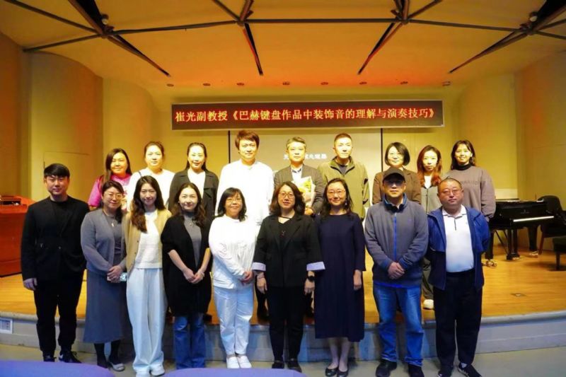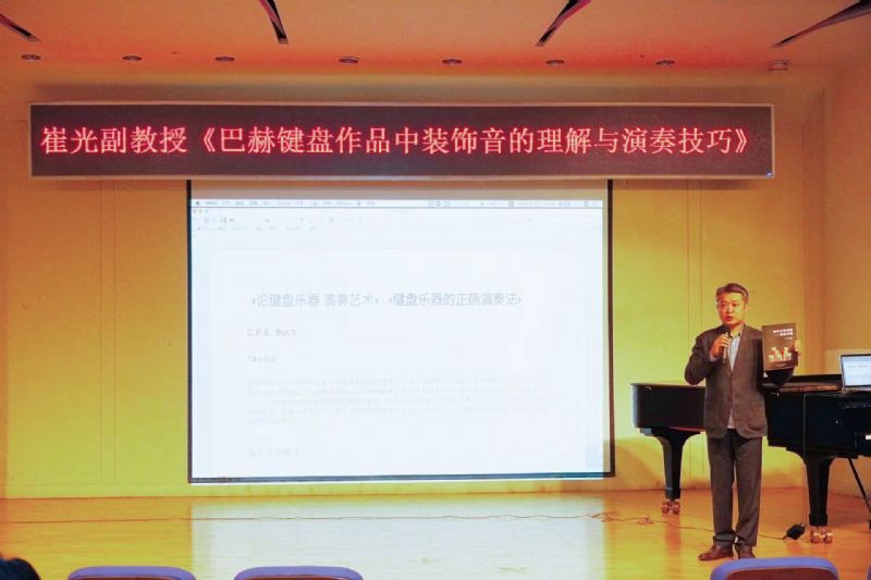 •                                9月24日下午,钢琴系艺术实践周系列活动——崔光博士教学专题讲座在第二教学楼424如期举行。本场讲座由钢琴系旅德钢琴博士,崔光副教授讲授,题目为《巴赫键盘作品中装饰音的理解与演奏技巧》。讲座由钢琴系副主任崔秀峰主持。
