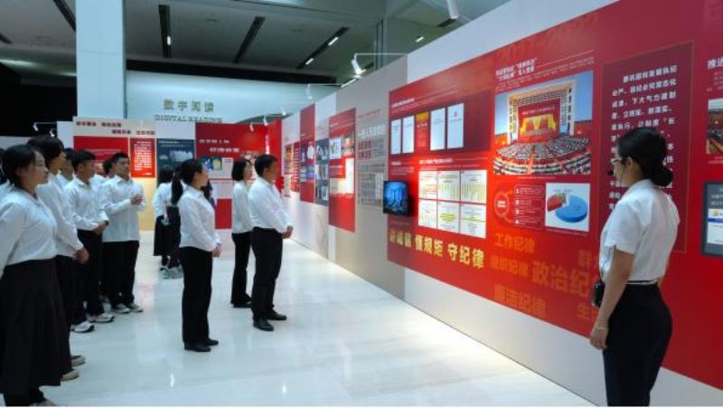 在讲解员的引领下,党员干部师生和入党积极分子先后观看了新民主主义革命时期的纪律建设、社会主义革命和建设时期的纪律建设、改革开放和社会主义现代化建设新时期的纪律建设、中国特色社会主义新时代的纪律建设四个单元展厅,详细了解了从“党内第一个反腐文件”到“新中国成立后第一部惩治贪污条例”、从“三大纪律八项注意”到“八项规定改变中国”、从“白山黑水间的铁纪铁军”到“全面加强党的纪律建设”等党史中有关纪律发展和纪律建设的重要史实、标志性事件、模范人物、警示案例,共同回顾了中国共产党领导全国人民在革命、建设、改革的伟大实践中,以勇于自我革命的精神,不断加强纪律建设的光辉历程,特别是新时代以来,以习近平同志为核心的党中央以坚定决心、顽强意志、空前力度推进全面从严治党取得的历史性、开创性成就。