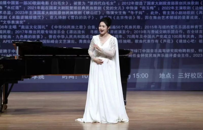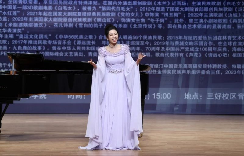 沈晶晶演唱了《秋风词》《我出生在黄河岸旁》《天上雾腾腾》,风格迥异的声乐作品被演唱者表现得驾驭自如、首首惊艳。