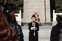 活动当天,在讲解员的带领下,同学们参观了英烈纪念馆。纪念馆通过大量的史实、影像资料以及浮雕、声光电等场景复原技术,生动再现了抗美援朝战争的历史全貌。随后,大家跟随讲解员的脚步走进墓园,通过讲解,崇敬与敬畏无以言表,听着红色故事、英雄事迹,在这苍松翠柏掩映的烈士陵园里,伫立在烈士墓碑前,思绪倒流到上个世纪50年代初期……同学们忍不住热泪盈眶。他们用生命谱写了惊天地、泣鬼神的雄壮史诗,伟大抗美援朝精神跨越时空、历久弥新,必须永续传承、世代发扬。全体学生深深地感受到当时艰苦残酷的战争环境和志愿军烈士们对党和国家、对人民的热爱与忠诚,接受了一次党性洗礼,提振了士气,凝聚了力量,增强了历史使命感和责任感。