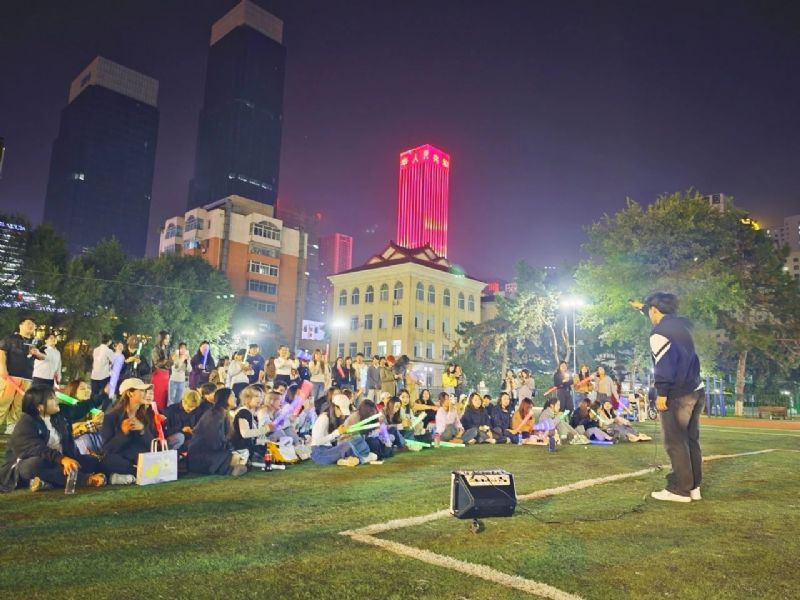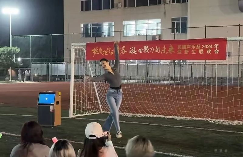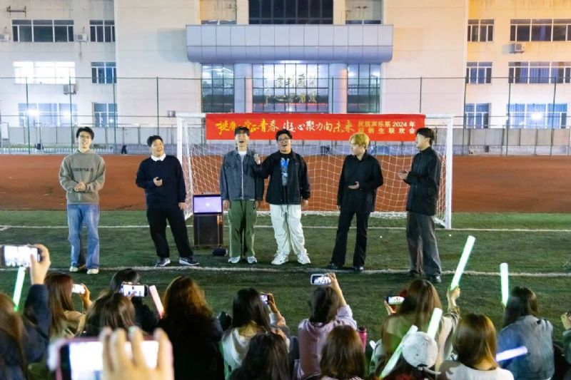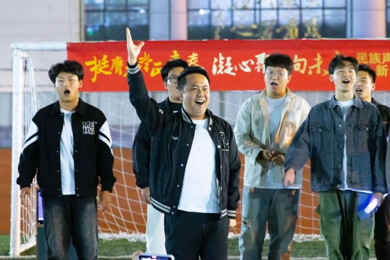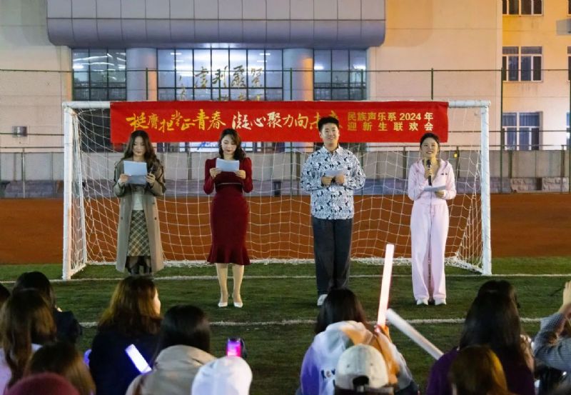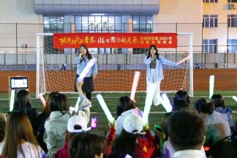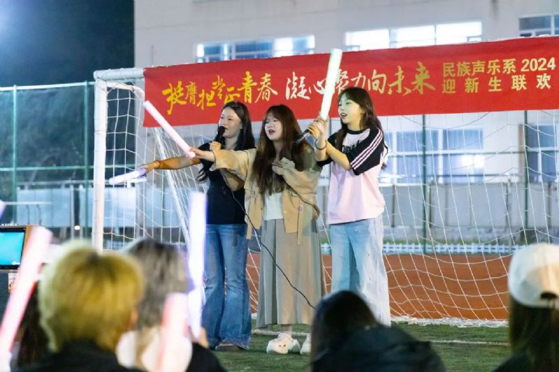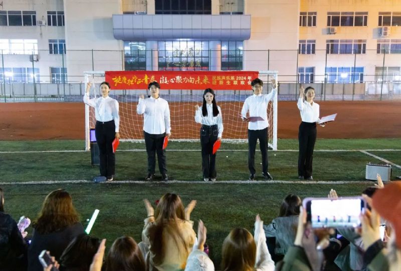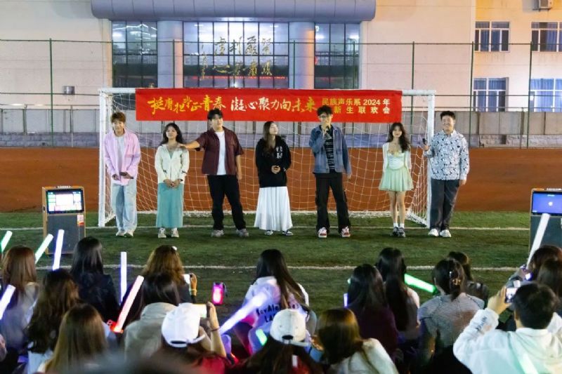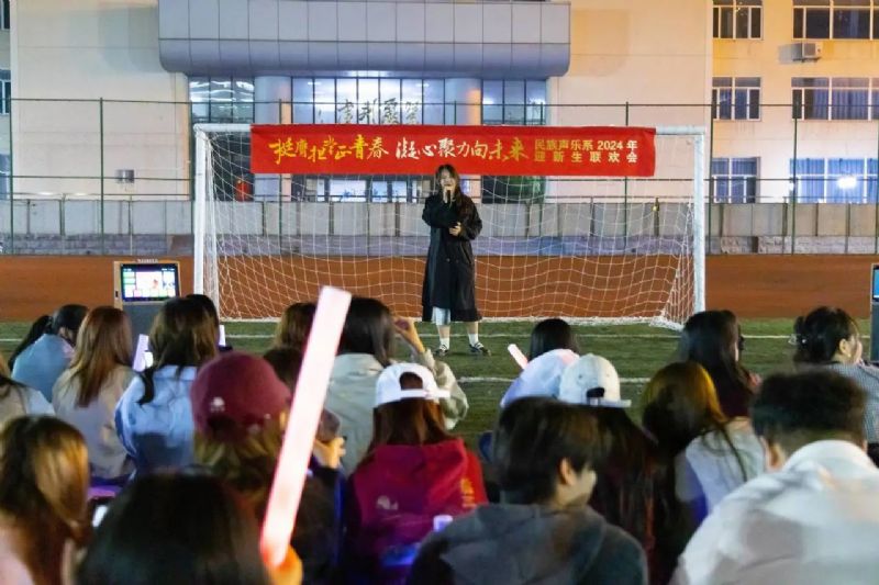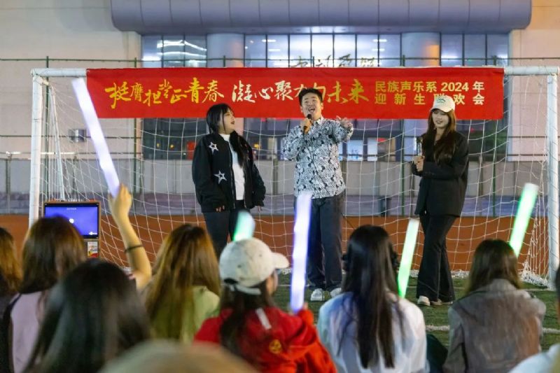 喜迎国庆华诞,民歌精彩飞扬。9月27日,校园内洋溢着青春的活力与喜悦,一场精彩纷呈的“挺膺担当正青春 凝心聚力向未来”民族声乐系2024年迎新联欢会在三好校区足球场上隆重举行。民族声乐系党总支书记郎丽红、组织员吴迪以及辅导员王国峰、易美含,与2024级新生齐聚一堂,共同见证新同学们怀揣憧憬与梦想,开启大学之旅的精彩篇章。