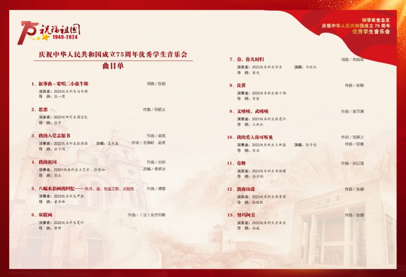 预告丨祝福祖国——钢琴系党总支庆祝中华人民共和国成立75周年优秀学生音乐会