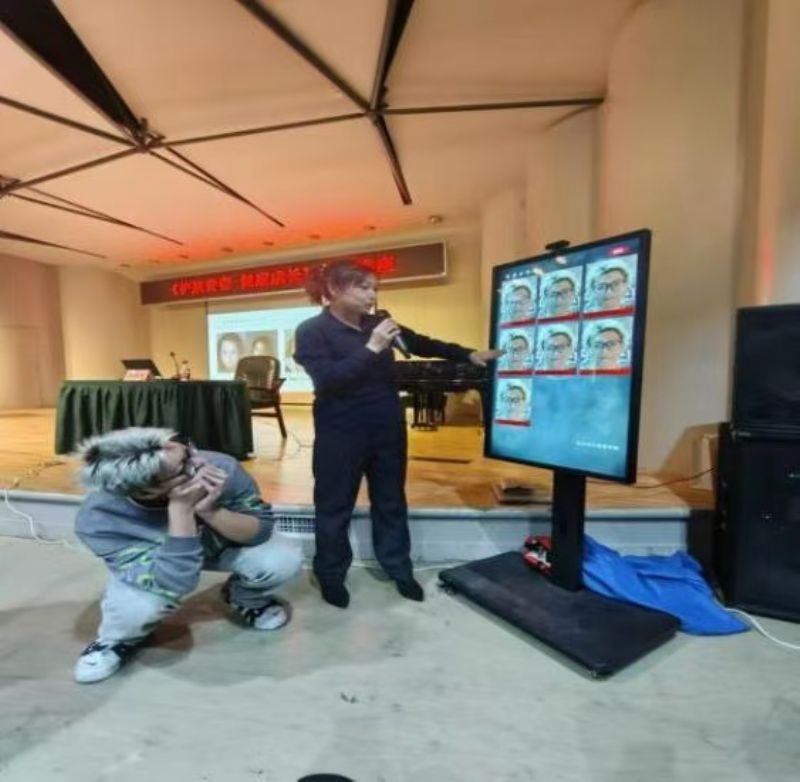 现场,还加入了互动环节,同学们可通过大屏幕进行图像采集,进行吸毒前后的面部照片对比。以及户外游戏直观体验,模仿致幻精神状态下人的意识,更加真实的体验到毒品对身体的巨大危害。