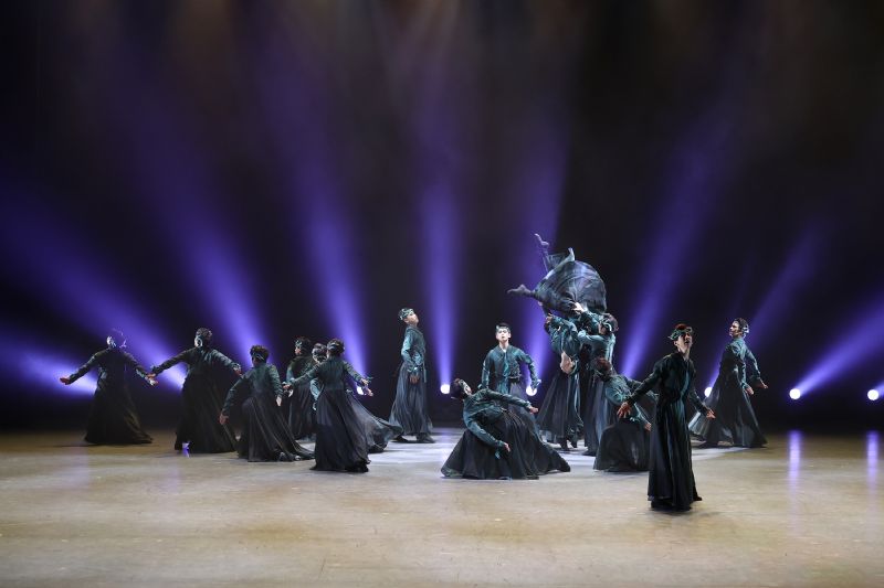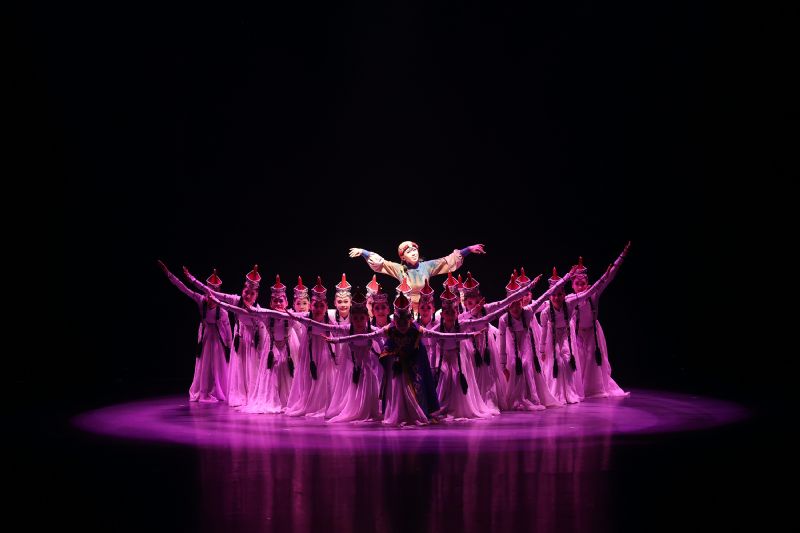 演出在2024年度国家艺术基金小型剧目资助项目、第十三届中国舞蹈“荷花奖”古典舞奖作品《散乐图》中拉开序幕。舞蹈以辽墓壁画为创作基底,再现了古壁画中歌舞繁盛的场景与民俗文化。中国民族民间舞群舞《激扬布鲁》将蒙古先民狩猎工具和御敌武器“布鲁”这一国家级非物质文化遗产搬上舞台,再现了草原先民野外狩猎的原始野性美。中国古典舞女子群舞《且吟春语》中轻盈舞动的水袖如春柳随风飘舞,带来盎然生机,寓意对未来的美好期盼。中国民族民间舞群舞《守护》展现了蒙古族勇士在危难中挽救生命的民族大义之美,表达了领航前行的民族精神。中国古典舞群舞《归鸟》用灵动的肢体语言表现众鸟远飞,抒发了人们渴望自由与富足的美好愿望。