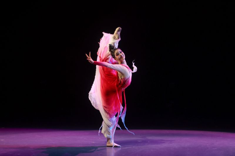 “独舞集锦”中包含令人惊艳的四段舞蹈。中国古典舞《翩若惊鸿》刚柔相济、轻盈飘逸;中国古典舞《水墨孤鹤》以鹤的形象和水墨画的意境,传达出超凡脱俗的美学体验;中国民族民间舞《琥珀》展现出傣家女子的柔美灵动;藏族热巴舞《跳动的心铃》表达出藏族热巴艺人对自由洒脱精神的追求。