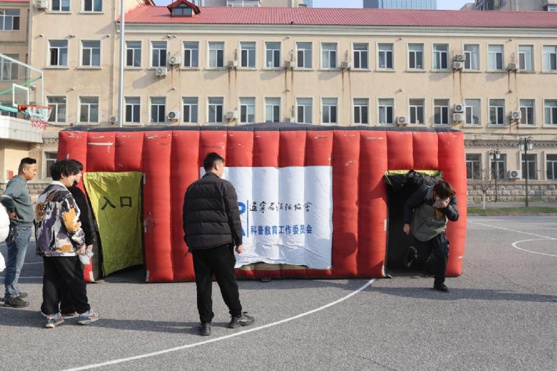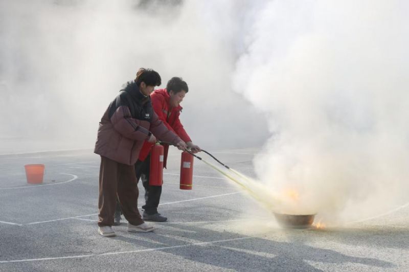 最后又进行了模拟密闭空间内火灾的逃生演练,此项内容增强了学生在火灾现场下的自我救助的技能。