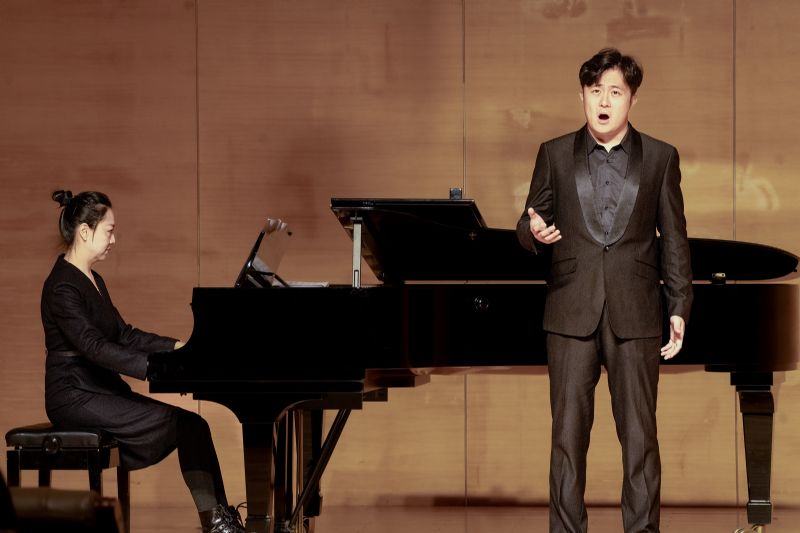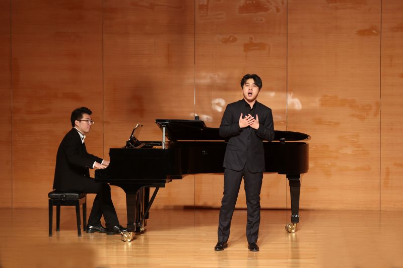 2022级研究生崔洪瑞演唱歌剧《沂蒙山》选段《爱永在》,将剧中人物林生对家乡和亲人的眷恋之情演绎得淋漓尽致。第二首多尼采蒂歌剧《军中女郎》中的选段“Ah mes amis”被誉为男高音的试金石,他精彩的演唱,赢得了现场观众的阵阵欢呼。