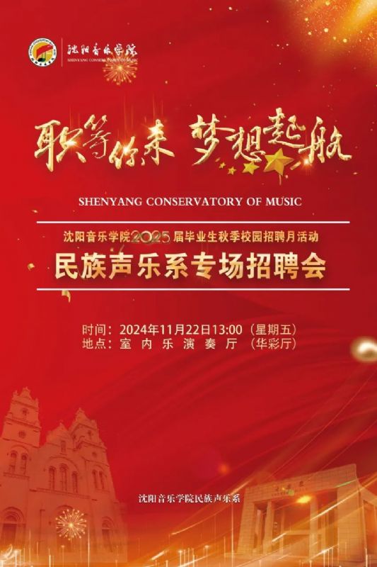 沈阳音乐学院2025届毕业生秋季校园招聘月活动暨“职等你来 梦想起航”民族声乐系专场招聘会发布预告