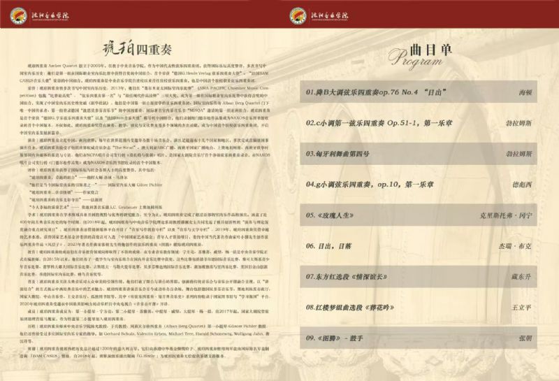 音乐会名称:2024年沈阳音乐学院双一流建设项目《弦乐室内乐表演艺术人才培养》—琥珀四重奏讲演音乐会