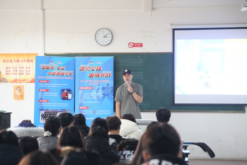 为深入贯彻落实习近平总书记关于“三亿人参与冰雪运动” 重要指示精神,全面落实立德树人根本任务,把共青团“五育”并举作为落实立德树人根本任务的关键环节,11月29日,在沈阳团市委的指导下,团委在长青校区开展“音乐冰球齐共舞 逐梦冰雪向未来”冰雪进校园活动。活动由音乐科技系分团委书记王默主持。