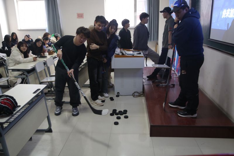 活动通过对冰球运动进行普及,介绍冰球装备、宣传运动特点、现场展示专业冰球运动相关装备、用具,让学生直观感受冰球运动,激发学生对冰球兴趣。通过拨球、趣味射门等互动游戏让现场学生感受冰球、体验冰球,提高学生的身体协调能力和迅速反应能力,同时培养他们的团队协作能力。