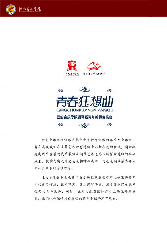 音乐会名称:青春狂想曲--西安音乐学院钢琴系青年教师音乐会