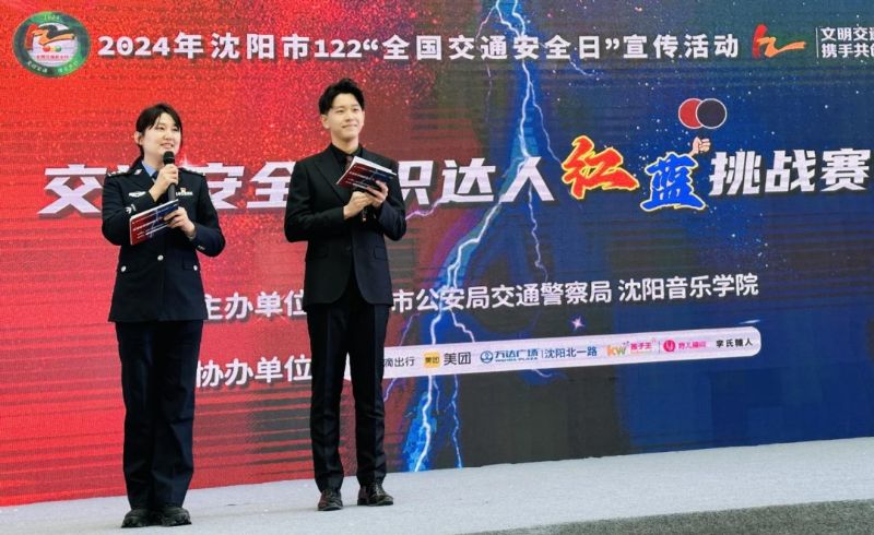 在第13个“全国交通安全日”到来之际,12月1日,沈阳音乐学院“红色文艺轻骑兵”戏剧影视学院小分队与沈阳市公安局交通警察局、铁西区文明办等单位联合举办2024年沈阳市“全国交通安全日”宣传活动——交通安全知识达人红蓝挑战赛。小分队师生们将精彩的文艺演出与交通安全知识宣传巧妙融合,倡导文明交通、安全出行的社会风尚。