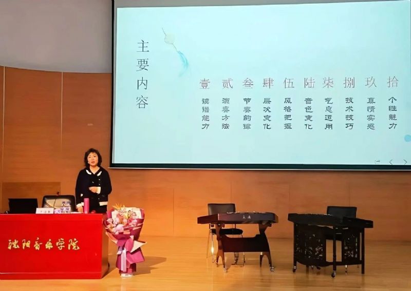 12月13日至12月14日沈阳音乐学院民族器乐系特邀著名扬琴演奏家、教育家,浙江音乐学院国乐系教授、硕士研究生导师,沈阳音乐学院优秀校友于海英教授来我院进行扬琴专业交流音乐会及学术讲座。