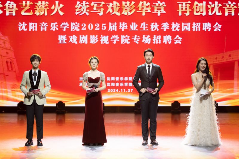 11月27日,“传承鲁艺薪火 续写戏影华章 再创沈音辉煌”沈阳音乐学院2025届毕业生秋季校园招聘会暨戏剧影视学院专场招聘会在长青校区音乐剧场隆重举行。沈阳音乐学院党委书记赵恒心、党委副书记孙旭东出席开幕式。纪委书记、监察专员张健致开幕辞。中央广播电视总台辽宁总站党委副书记、副站长孙松涛,著名音乐剧制作人、作曲家、音乐人张志林等70余家用人单位的领导和嘉宾观看毕业展演。