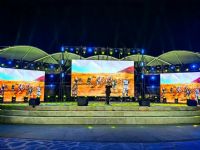 整场演出在民族打击乐《盛世龙腾》中拉开帷幕,激昂的旋律和优美的舞姿展现了祖国的繁荣昌盛,瞬间点燃现场氛围。歌曲《江山》深刻诠释了中国共产党坚持人民至上、时刻把人民群众的利益放在首位的执政理念。唢呐独奏《胜利秧歌》、竹笛独奏《扬鞭催马运粮忙》象征着在党的带领下,朴实的劳动人民靠着勤劳的双手迎来了美好的生活。二重唱《家和万事兴》展现了相亲相爱、邻里和睦的温馨和谐生活氛围。演出《歌唱祖国》的歌声中落下帷幕,全体观众纷纷起立,摇动手中的红旗,唱响同一首歌,为祖国献上最美好的生日祝福,将现场气氛推向了最高潮。