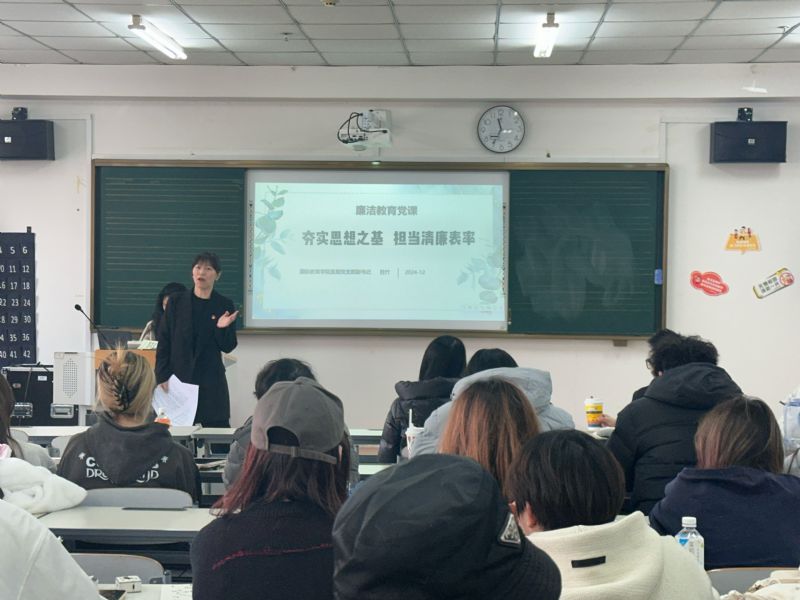 12月25日,国际教育学院直属党支部副书记吕竹作题为《夯实思想之基 担当清廉表率》的廉洁教育党课,加强校园廉洁文化建设,提升学生廉洁自律意识。辅导员赵旭、国际教育学院全体在校生参加了本次学习。