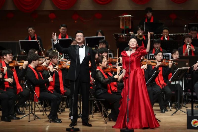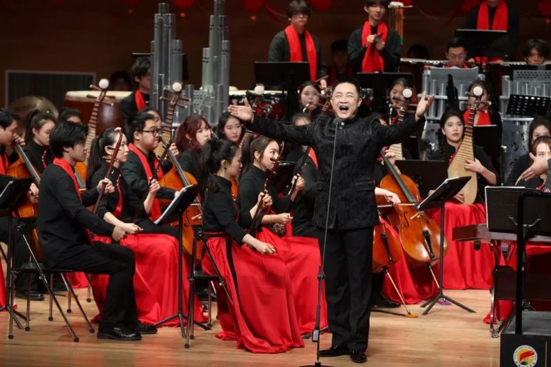 音乐会荟萃中西音律经典,曲目设置别具匠心、创意独到,既有幽默风趣、极具东北地域风格特色的民间小调《丢戒指》,融入山西民歌元素、深邃优美的歌曲《远情》,藏族民歌音乐元素鲜明,悠扬抒情、荡气回肠的歌曲《天路》;有展现中华民族悠久灿烂音乐文化的民乐合奏《金蛇狂舞》、古筝协奏曲《定风波》;又有脍炙人口、令人耳熟能详的经典管弦乐曲《节日序曲》《爱的致意》《威风堂堂进行曲》《柴可夫斯基第四交响曲》《肖斯塔科维奇第二圆舞曲》,以及寓意新的一年万物复苏的花腔女高音独唱《春之声圆舞曲》。还有近年来创作的民族管弦乐《春华秋实》,借音乐象征从辛勤耕耘到收获满满的历程,寓意新年的美好祝愿。音乐会上还演出了由我院创作的民族管弦乐《盛》,通过展示庆典仪式的庄重、欢庆与典雅,寓意兴旺、繁茂与美好;由我院创作并入选国家艺术基金2024年度资助项目的原创歌曲《初心告诉我》,深切表达了中国共产党人永葆奋斗精神、永怀赤子之心的使命担当。
