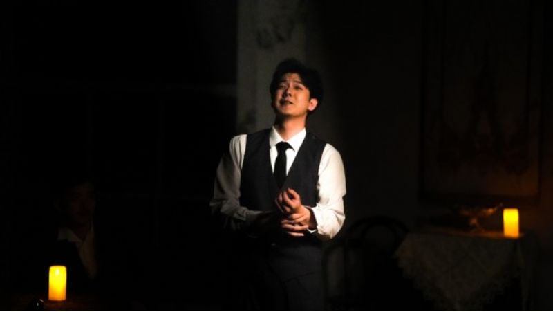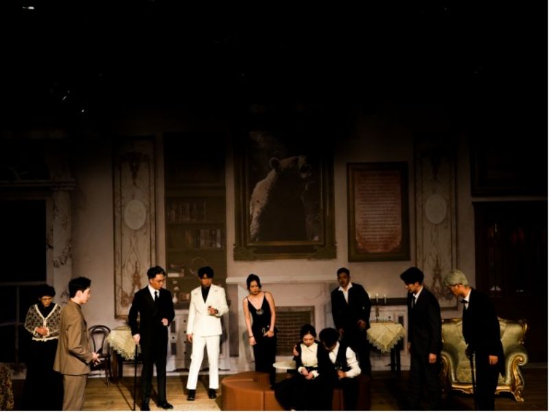 由2021级1组同学们表演的毕业剧目《无人生还》改编自阿加莎·克里斯蒂创作的同名侦探小说。该剧讲述了八名陌生人收到欧文夫妇的邀请,前往德文海岸旁的士兵岛。抵达后,他们发现欧文夫妇不在,仅有两名管家接待。然而,岛上接连发生诡异事件,宾客一个接一个离奇死亡的故事。