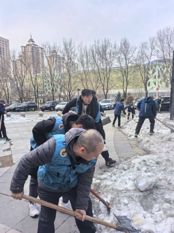 文艺演出结束后,党员师生们迅速转换角色,投入到紧张而有序的志愿服务活动中。他们拿起扫帚、铁锹等工具,分组对社区内的绿化带、休闲广场等公共区域进行了除雪和清扫。党员们不怕脏、不怕累,分工合作,干劲十足,经过大家的共同努力,社区环境焕然一新,得到了社区居民的一致好评。