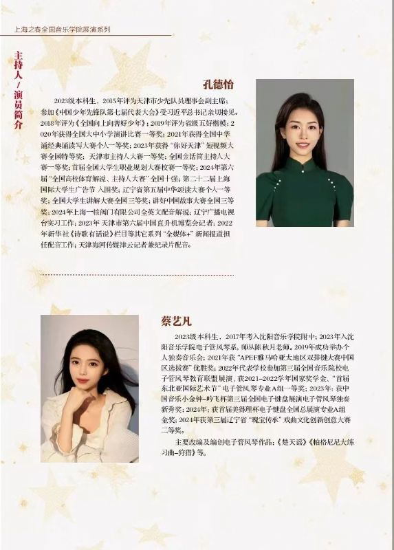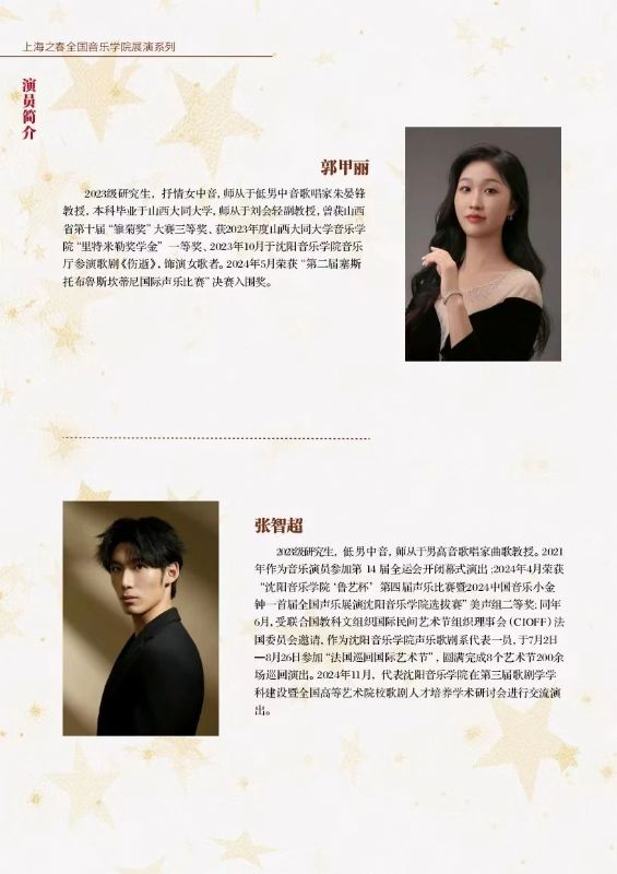 2025 年春季,音乐艺术的蓬勃朝气如潮水般席卷而来。在国内顶尖音乐院校的舞台上,一场场极具影响力的音乐盛事相继拉开帷幕。沈阳音乐学院2025春季演出季,以赴上海音乐学院,开展《上海之春音乐节系列活动之“闪耀新星”—沈阳音乐学院专场音乐会》作为开篇,正式激情启幕 。