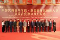 赵恒心在致辞中指出,2025年是中泰建交50周年。沈阳音乐学院与泰国西那瓦国际大学的合作,不仅是中泰两国友好关系的生动体现,更是两国在教育文化领域深化合作的积极实践。期待双方以协议签署为契机,构建常态化合作机制,开展深度合作项目,加强师资交流,推动学生互访,开展联合研究、艺术实践和文化交流活动,共育国际化艺术人才、共享优质学术资源、共创艺术实践平台,取得务实成果,为两国人文交流注入新的活力,为中泰两国的教育文化交流谱写新的篇章。