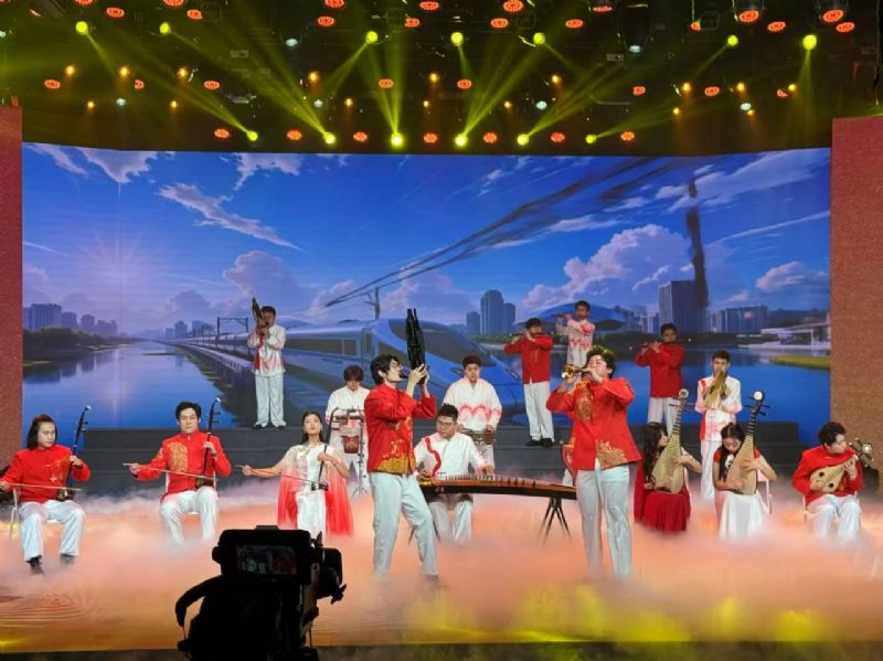 为了让晚会更加出彩,沈阳广播电视台向沈阳音乐学院发出了合作邀请。此次,我系《云官迅音》节目组合的17位同学参与其中。本次参演的17名学生在新生军训期间,自发编排的《云宫迅音》短视频在全网各类平台播放量超千万次,点赞量破30万。他们从2024年12月末开始投入紧张的春晚节目排练,在2025年1月6日—8日于沈阳广播电视台600平米的演播厅进行全天彩排和录制。