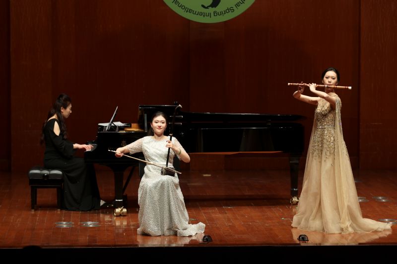 原创作品二胡与竹笛重奏《陌上花开》,二胡的婉转绵长与竹笛的清亮灵动交织,以江南音韵勾勒春色,传统民乐与现代作曲技法碰撞出独特美学;小提琴独奏《引子与回旋随想曲》,绚丽的演奏技巧与钢琴伴奏相得益彰,尽显法兰西浪漫情怀。